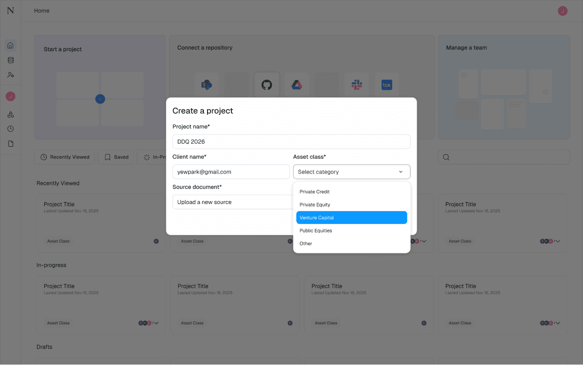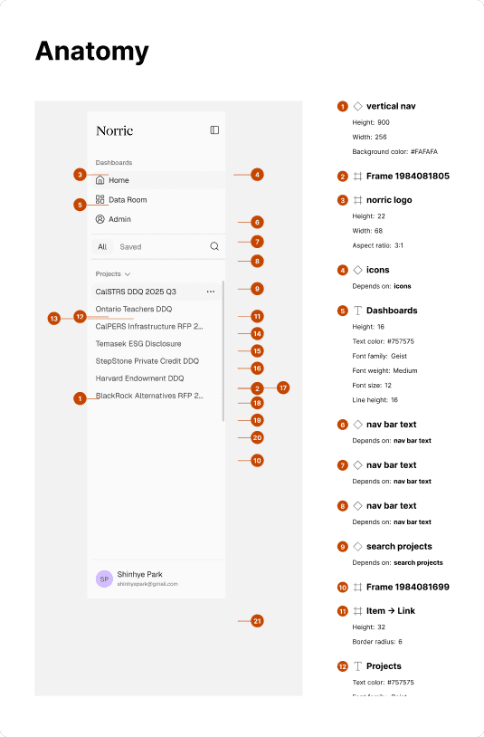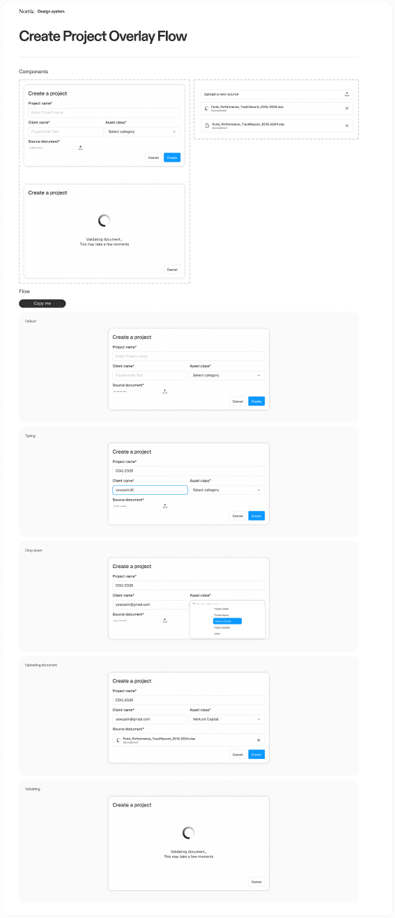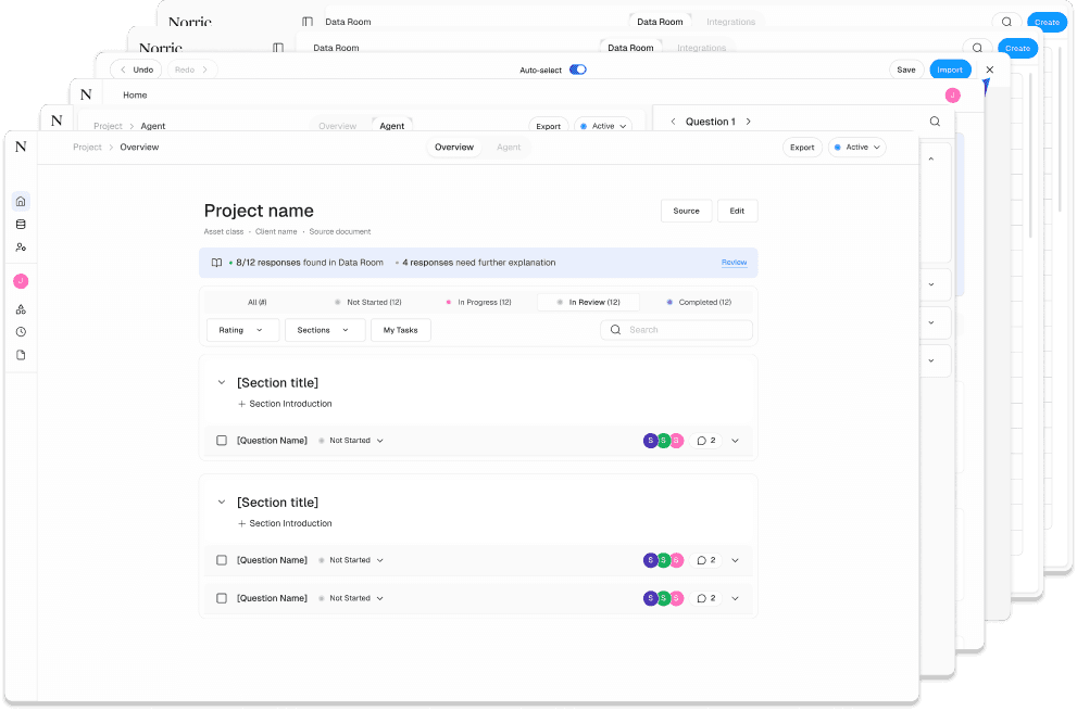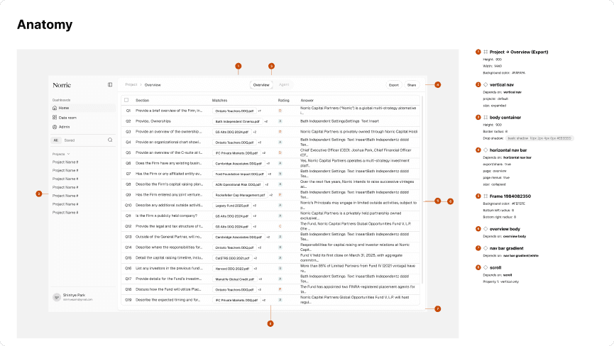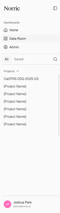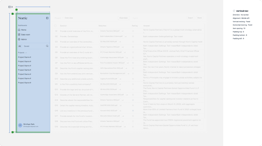 As a UI/UX intern at Norric, I designed landing pages for pretotyping phases of the company. I mainly worked on establishing brand visuals in slide decks and visual resources. Additionally, I revitalized company's due diligence questionnaire product driven by LLM AI that allows various levels of investors to streamline their investing strategies and decision making.