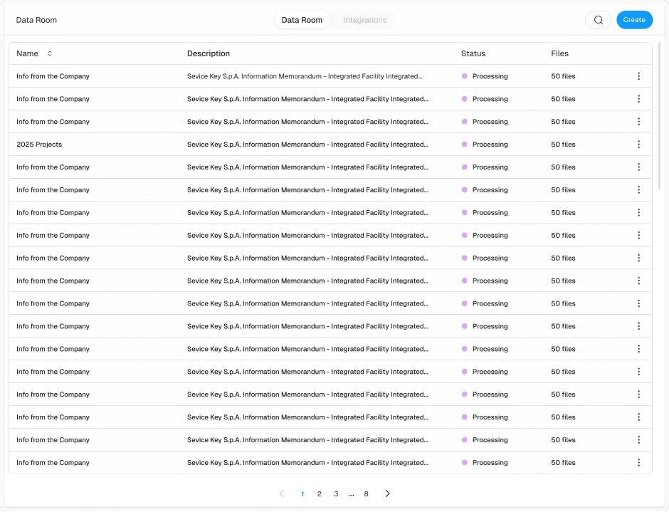 Seamless integration with existing siloed tools like Excel, VDRs, and CRMS